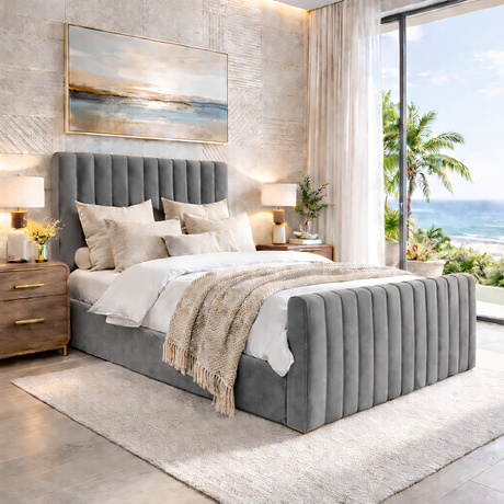 FREE DELIVERY! Ottoman Bed Frame Cloud – Teddy Boucle fabric | Available in All Sizes / GREY