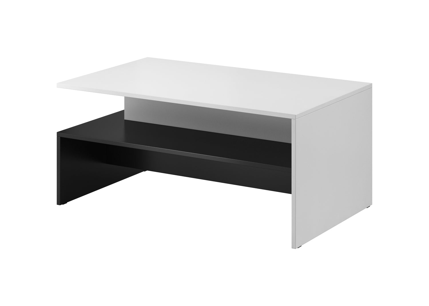 The COFFEE TABLE BAROS WHITE/BLACK is designed to fit seamlessly into modern homes. Its compact, versatile design offers a stylish yet functional solution for small living rooms. Made from durable 16mm laminated board, this table is resistant to abrasion and built to last. Its under-table shelving area is perfect for storing magazines, books, and other items.