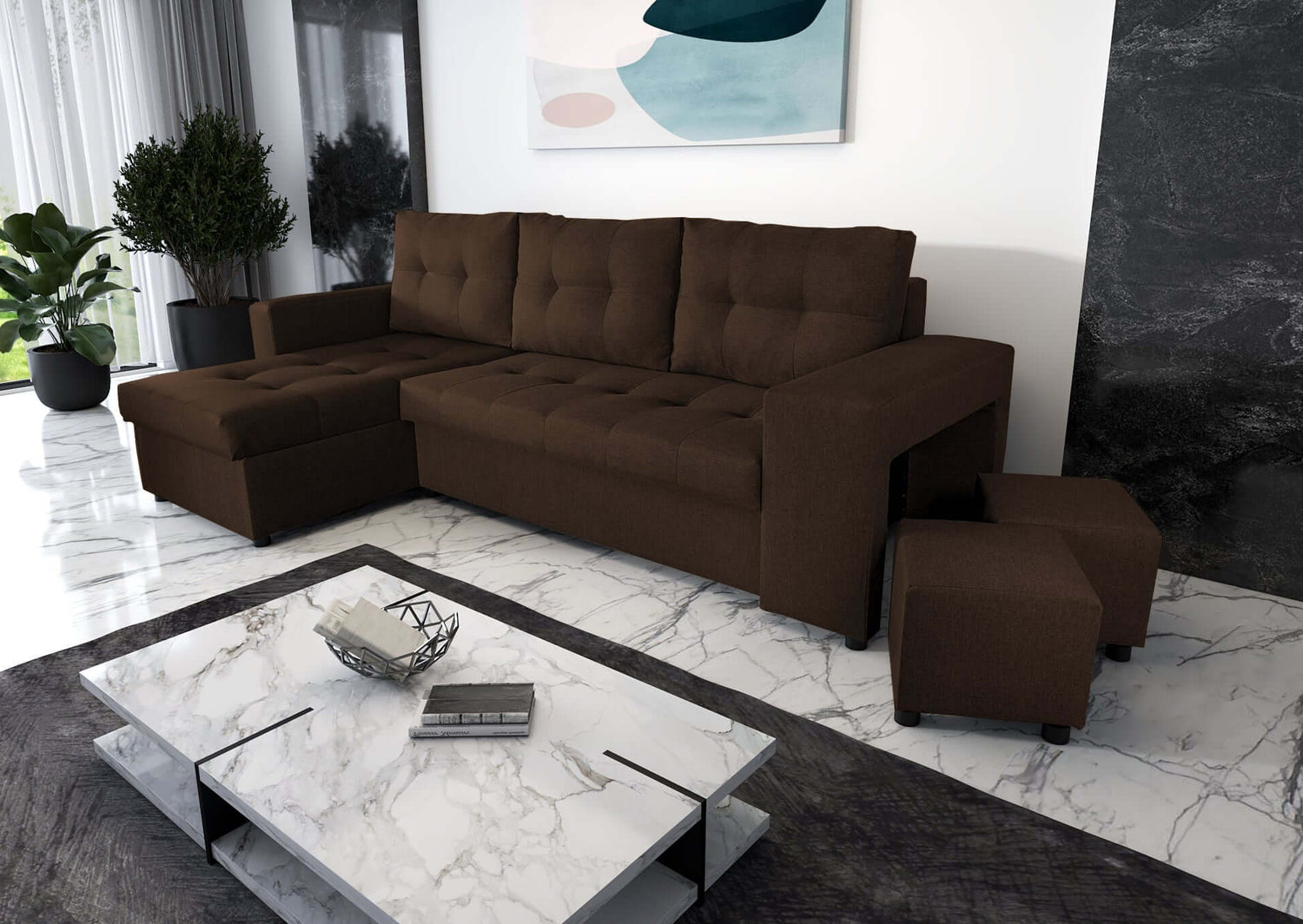 The corner sofa is upholstered with very good quality material from the Sawana collection.