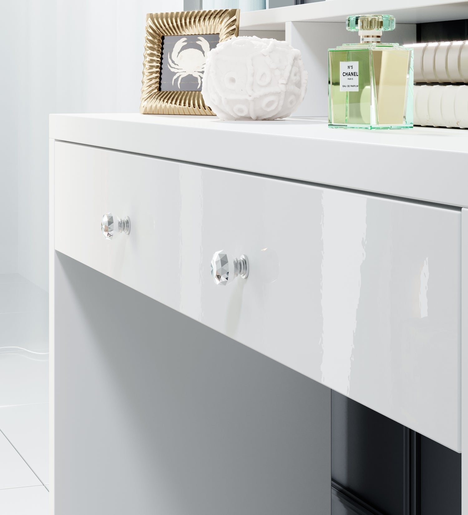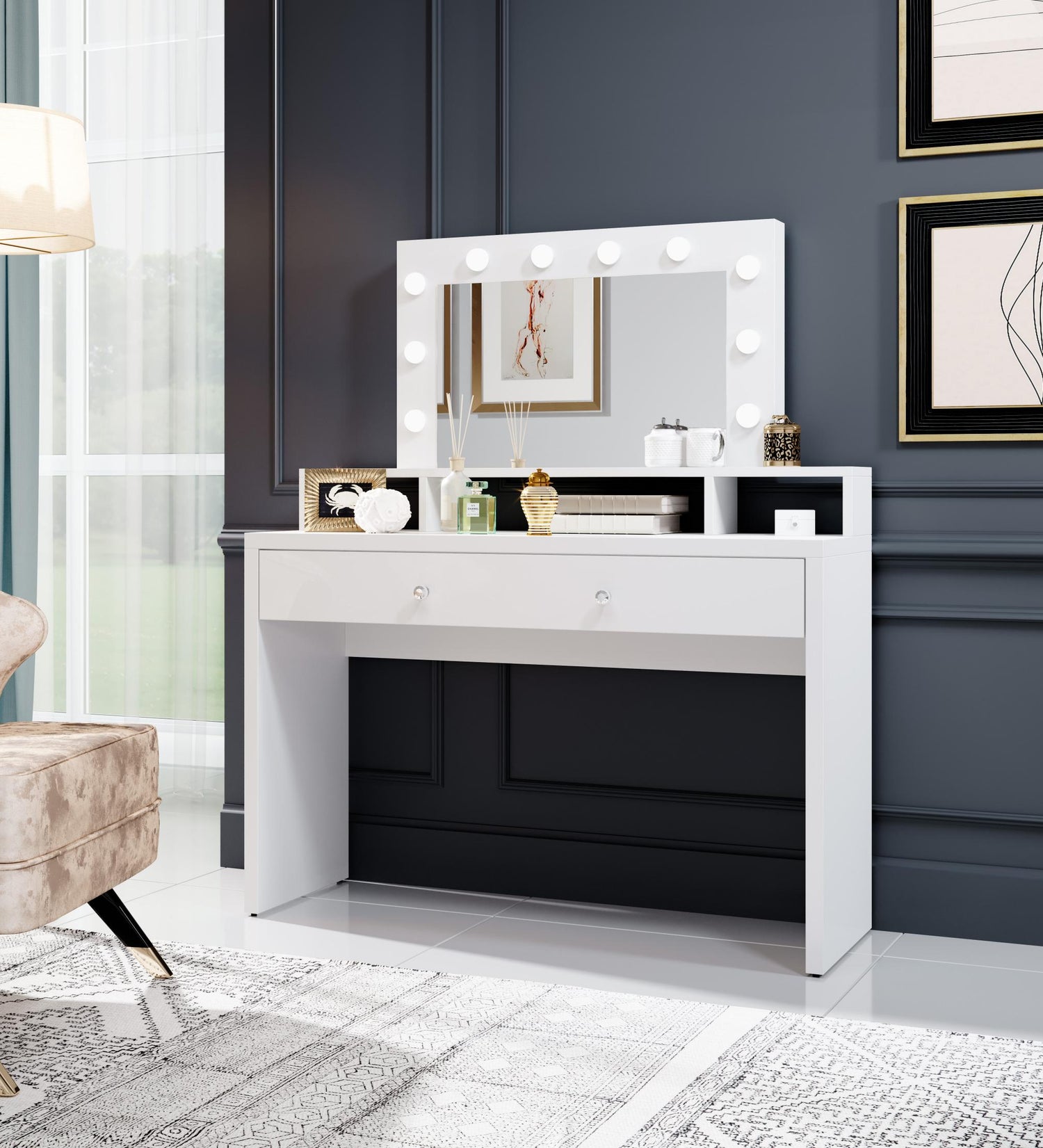 DRESSING TABLE WHITE/WHITE GLOSS WITH MIRROR AND LIGHT