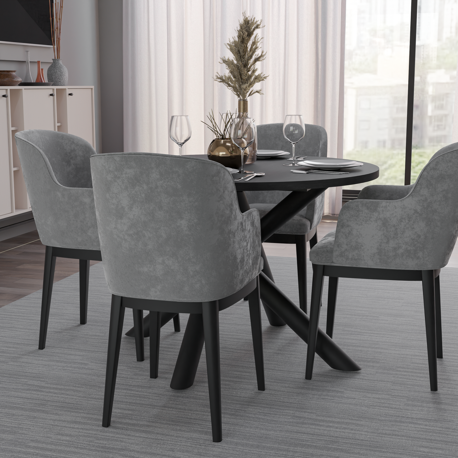 The OSLO DINING TABLE is a stunning collection of modern living room tables, boasting metal spider legs with a striking geometric, branched design. Not only do these legs add an aesthetic touch, but they also provide sturdy support for large tops. Available in four colors and featuring a round or oval top, these tables exude exceptional style and elegance. Perfect for modern, minimalist, industrial, glamorous, or eclectic room designs.