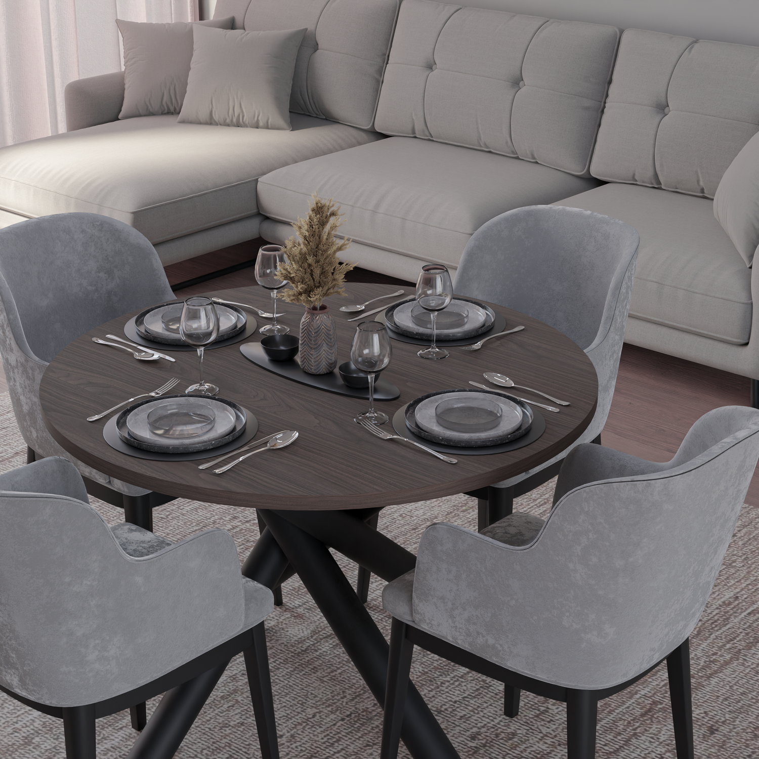The OSLO DINING TABLE is a stunning collection of modern living room tables, boasting metal spider legs with a striking geometric, branched design. Not only do these legs add an aesthetic touch, but they also provide sturdy support for large tops. Available in four colors and featuring a round or oval top, these tables exude exceptional style and elegance. Perfect for modern, minimalist, industrial, glamorous, or eclectic room designs.