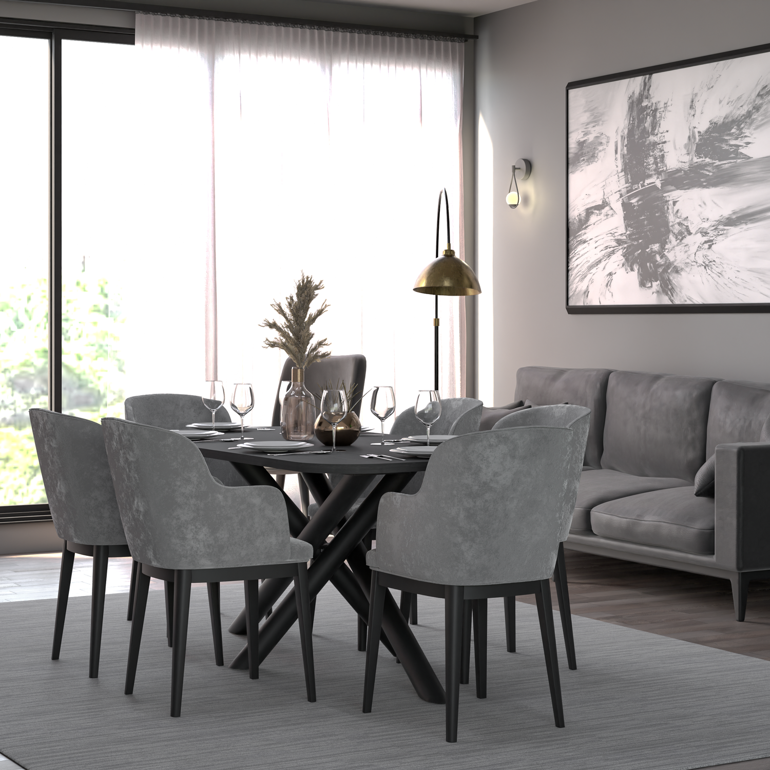 The OSLO DINING TABLE is a stunning collection of modern living room tables, boasting metal spider legs with a striking geometric, branched design. Not only do these legs add an aesthetic touch, but they also provide sturdy support for large tops. Available in four colors and featuring a round or oval top, these tables exude exceptional style and elegance. Perfect for modern, minimalist, industrial, glamorous, or eclectic room designs.
