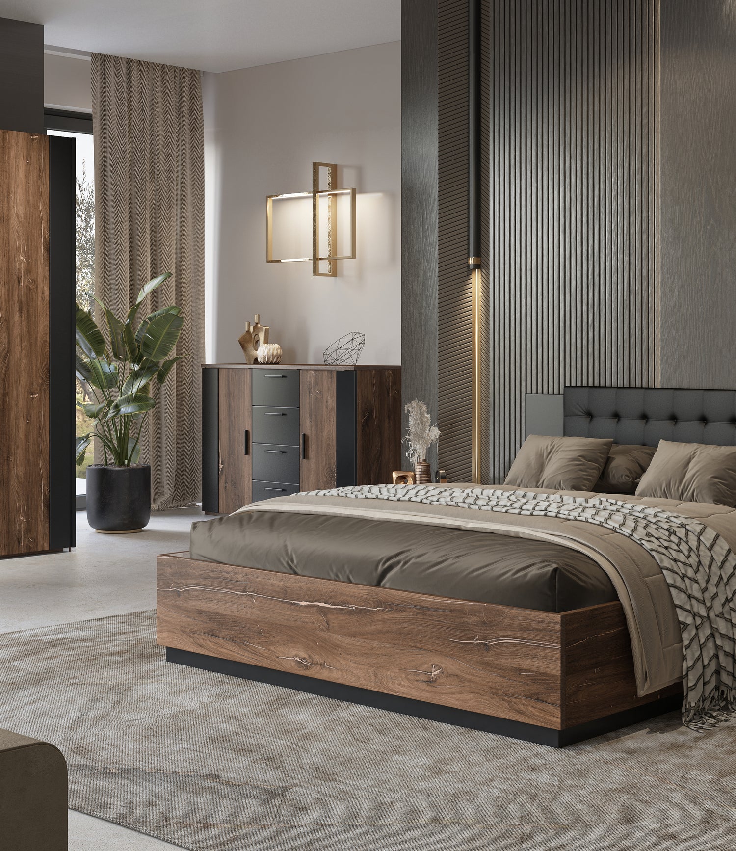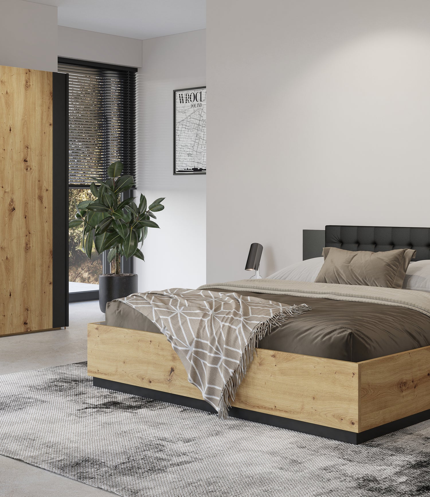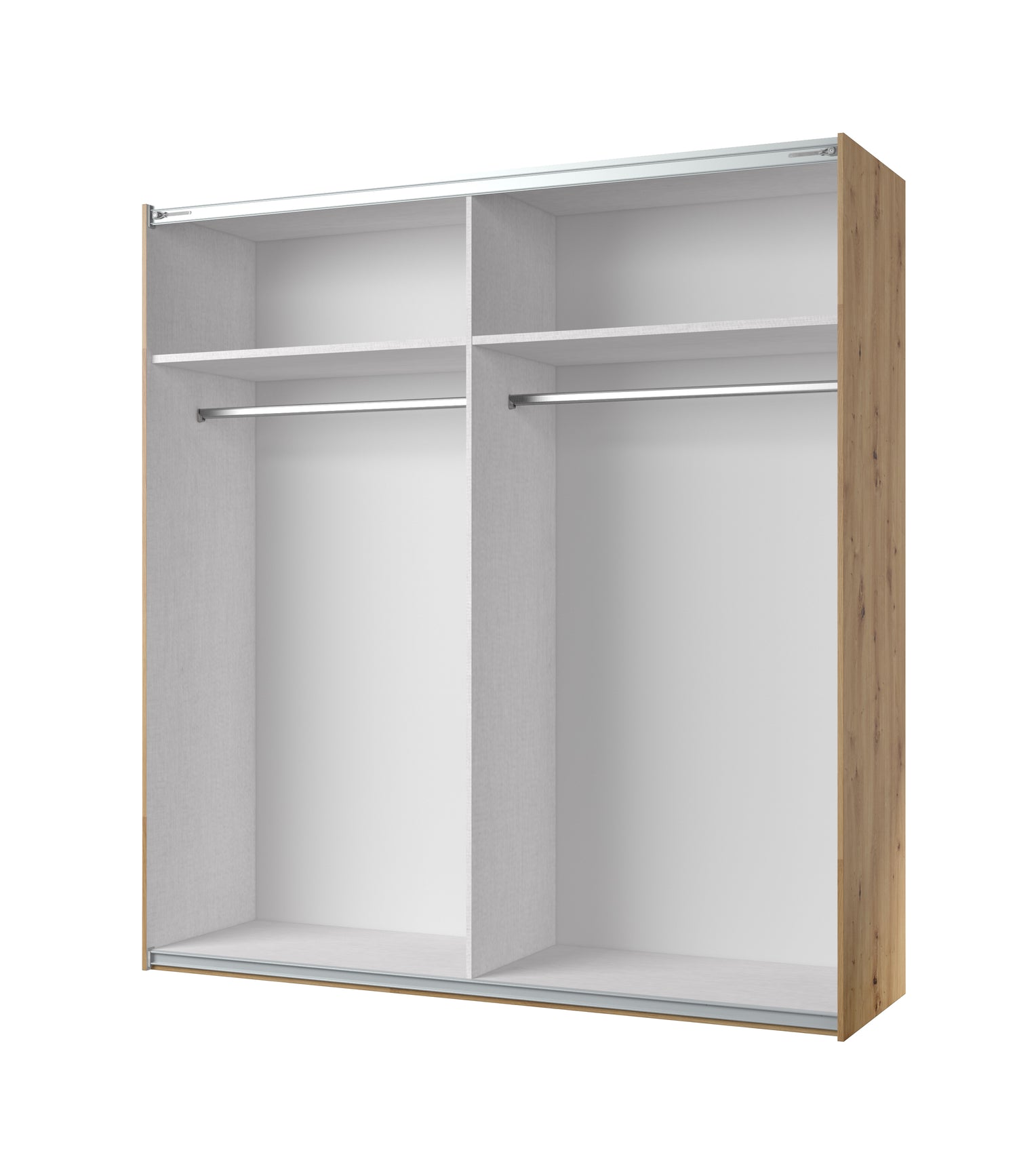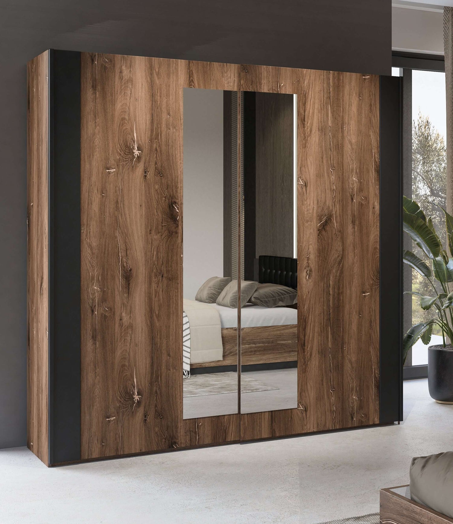 Introducing Sigma: a fusion of style, space, and contemporary practicality. Ideal for a bedroom or guest room, it boasts dual sliding doors, two roomy enclosed sections, and two hanging rods for organization. Choose from two shades of oak with a sleek black contrast, showcasing stunning natural patterns and rustic charm.
