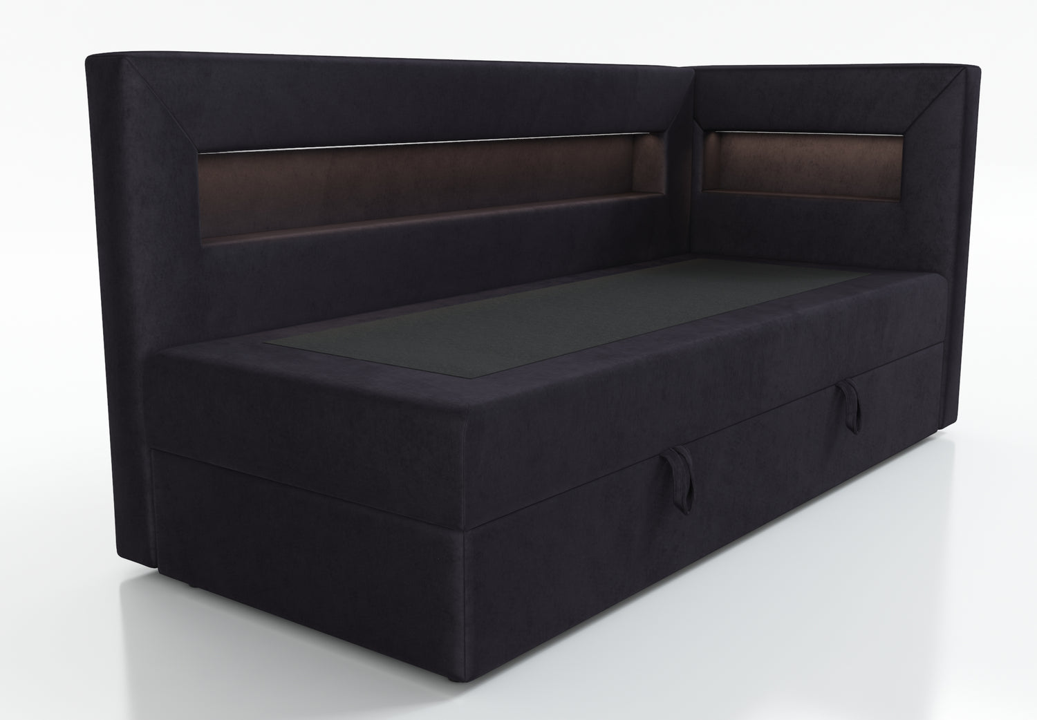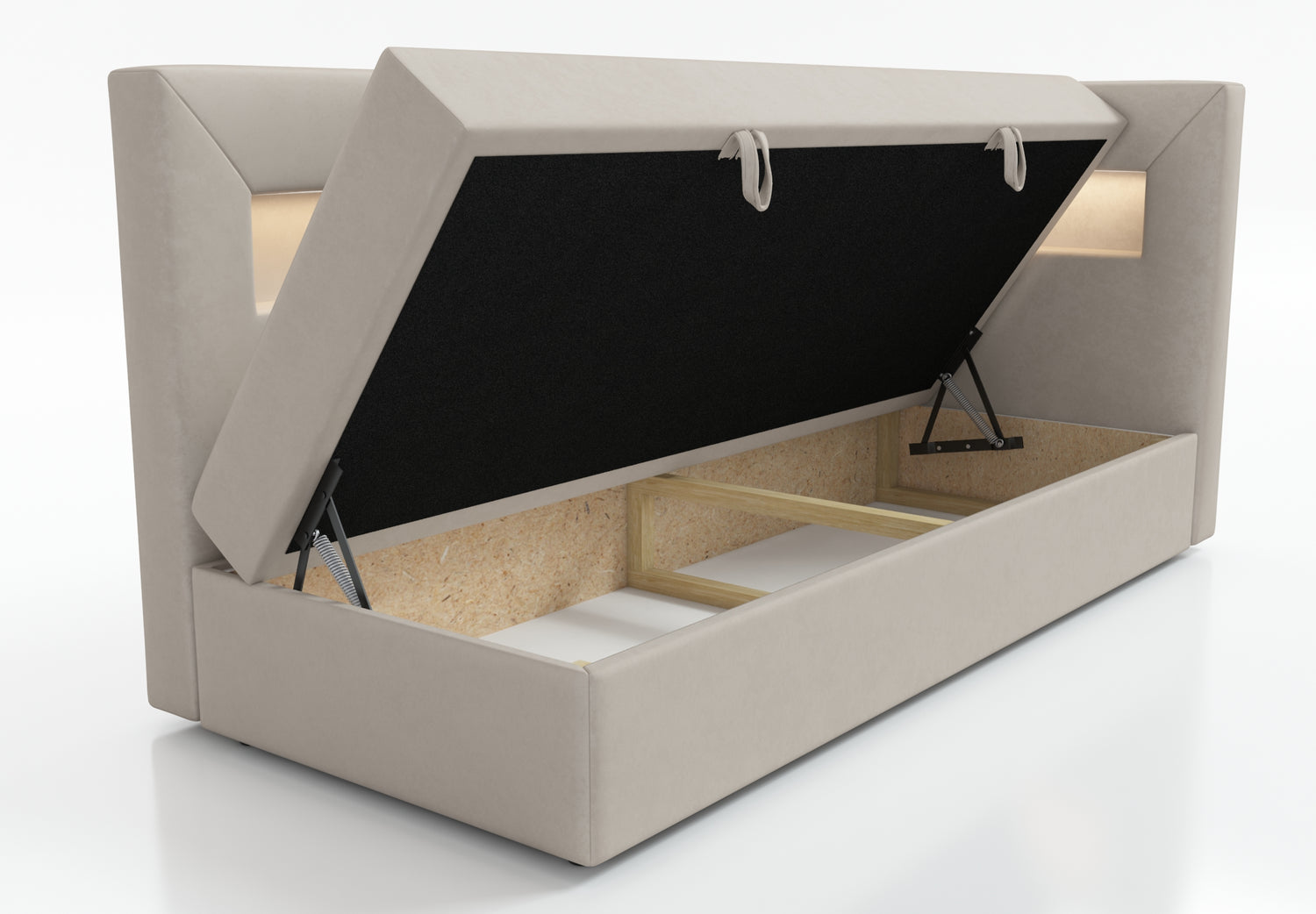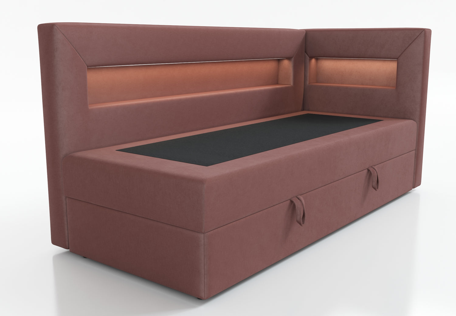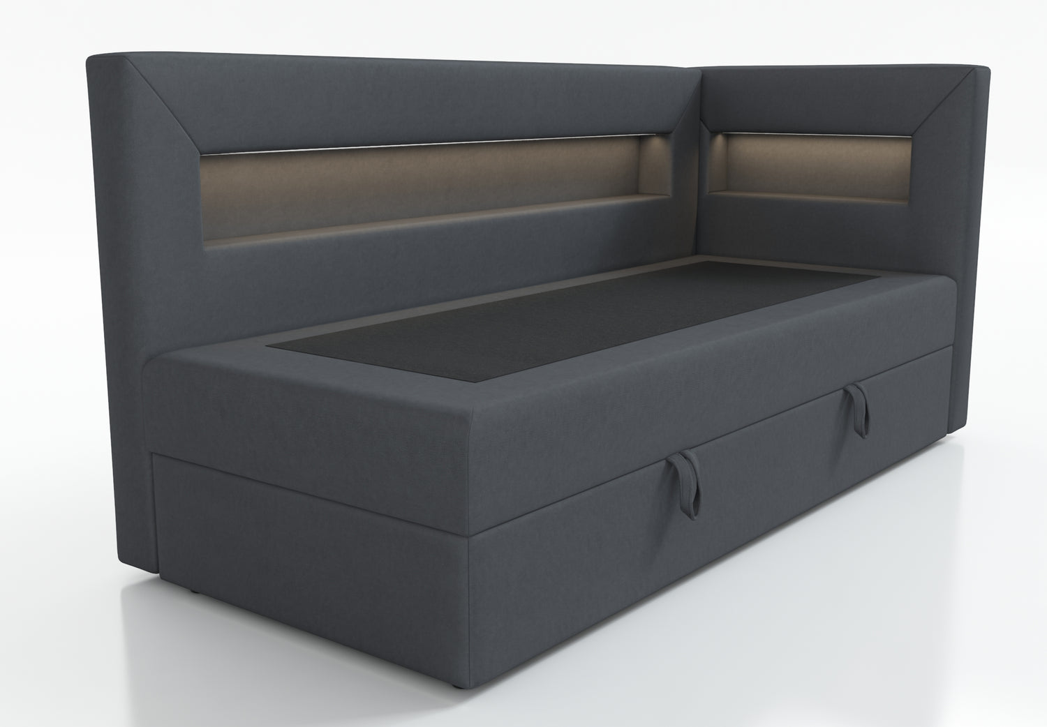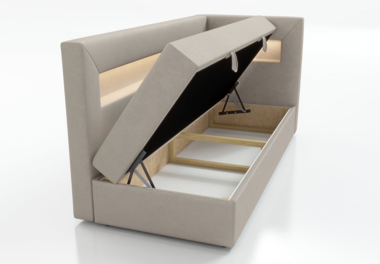 The bed is equipped with a shelf with LED lighting, a perfect solution for people who value functionality. The shelf can be used to hold books, a phone or other items that we want to have at hand. Additional LED lighting gives the interior a cozy atmosphere and can act as a night lamp, which is especially useful for people who like to read before going to bed.