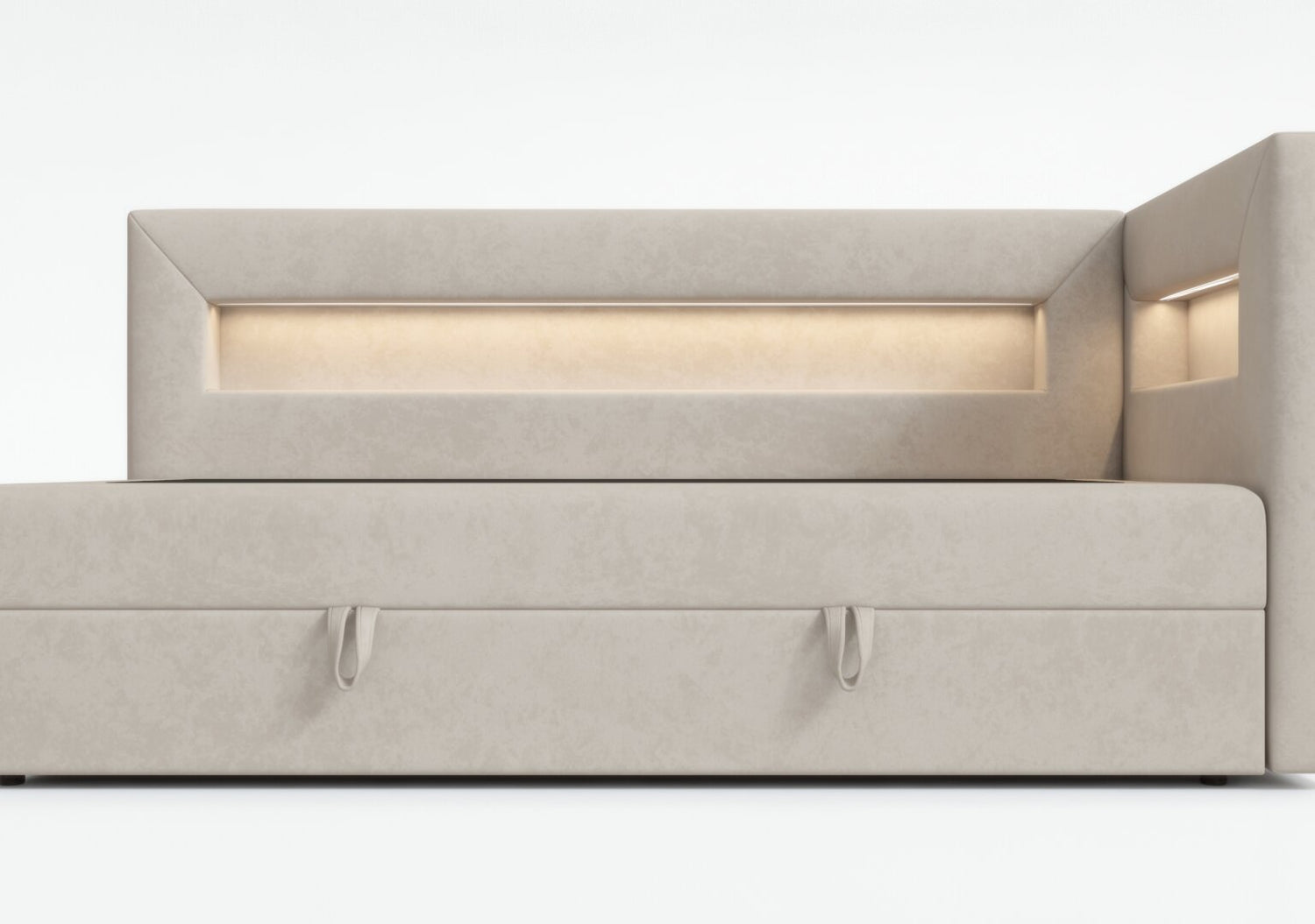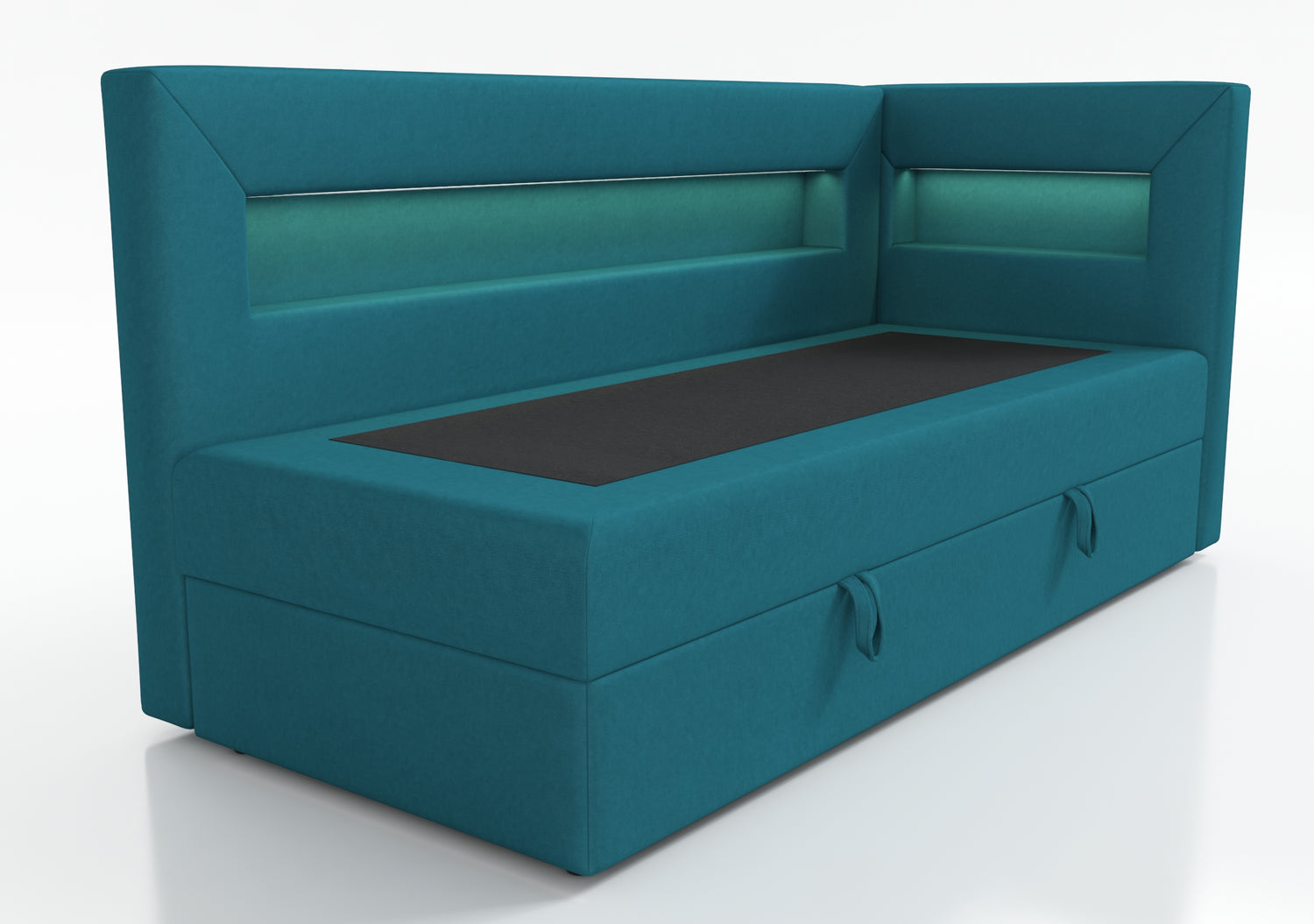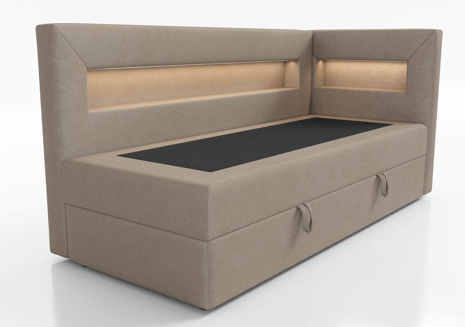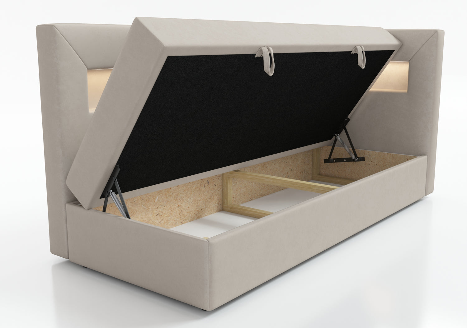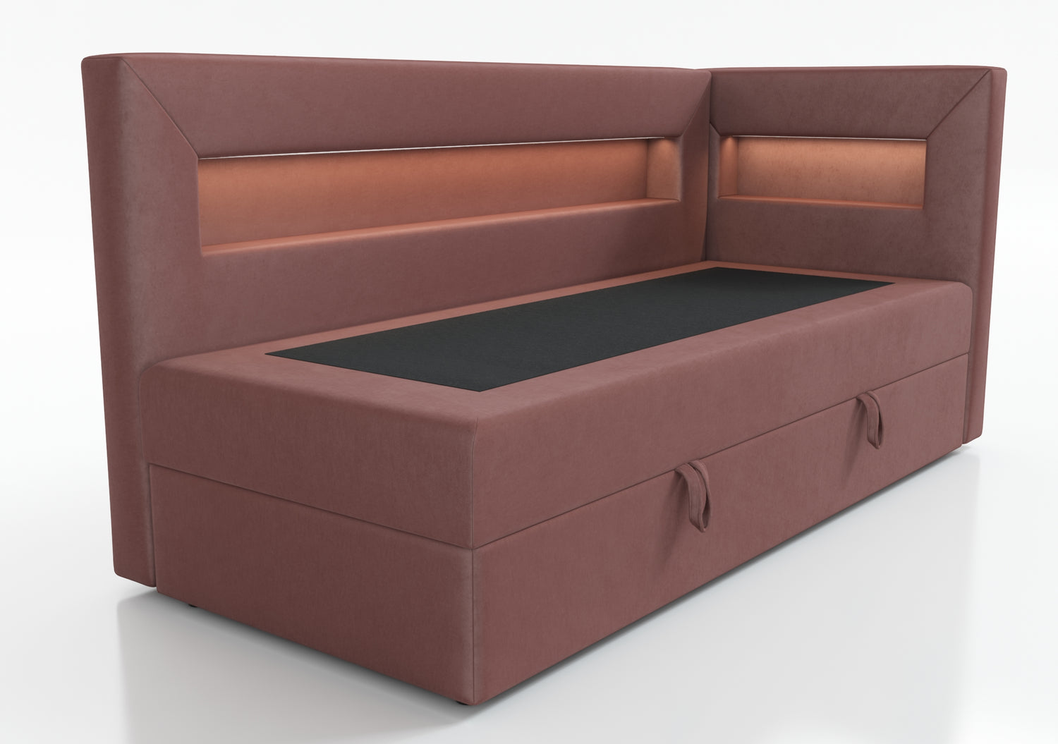 The bed is equipped with a shelf with LED lighting, a perfect solution for people who value functionality. The shelf can be used to hold books, a phone or other items that we want to have at hand. Additional LED lighting gives the interior a cozy atmosphere and can act as a night lamp, which is especially useful for people who like to read before going to bed.
