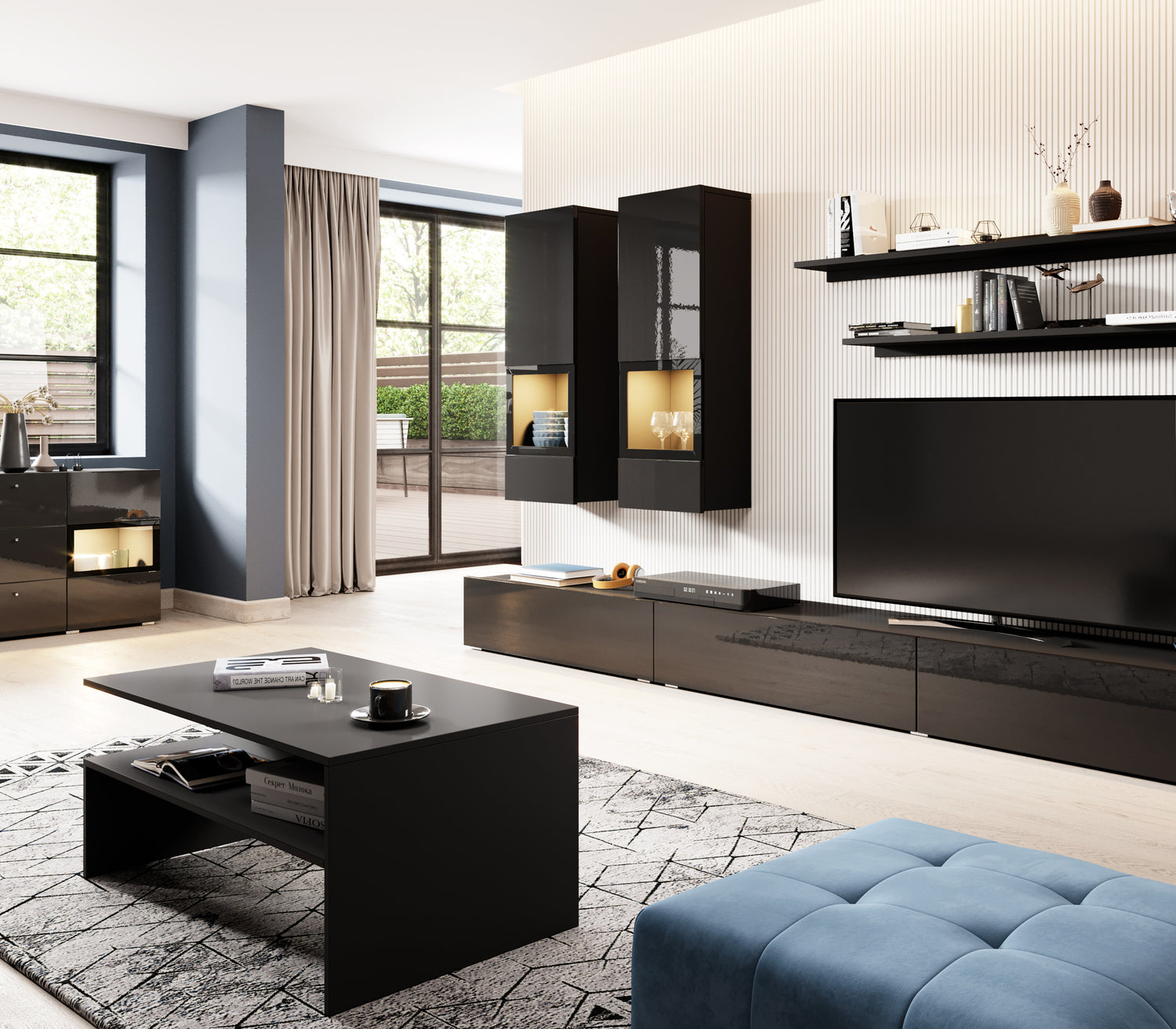 TV WALL UNIT ATHENS BLACK GLOSS/BLACK
