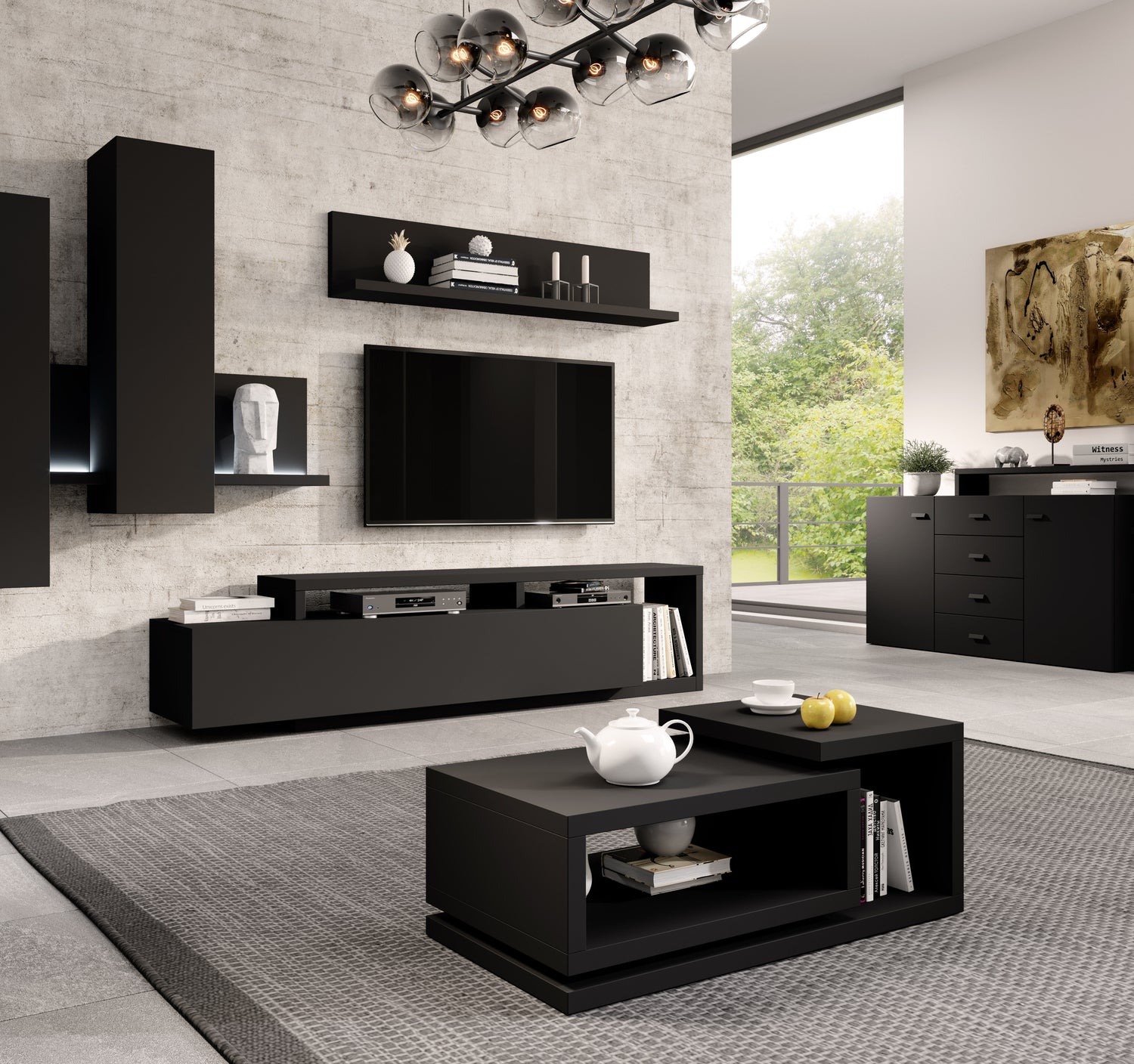 TV WALL UNIT BOTA BLACK MATT
