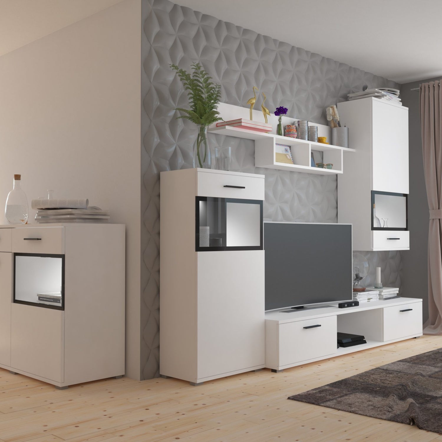 TV WALL UNIT MAXI SET WITH SIDEBOARD WHITE